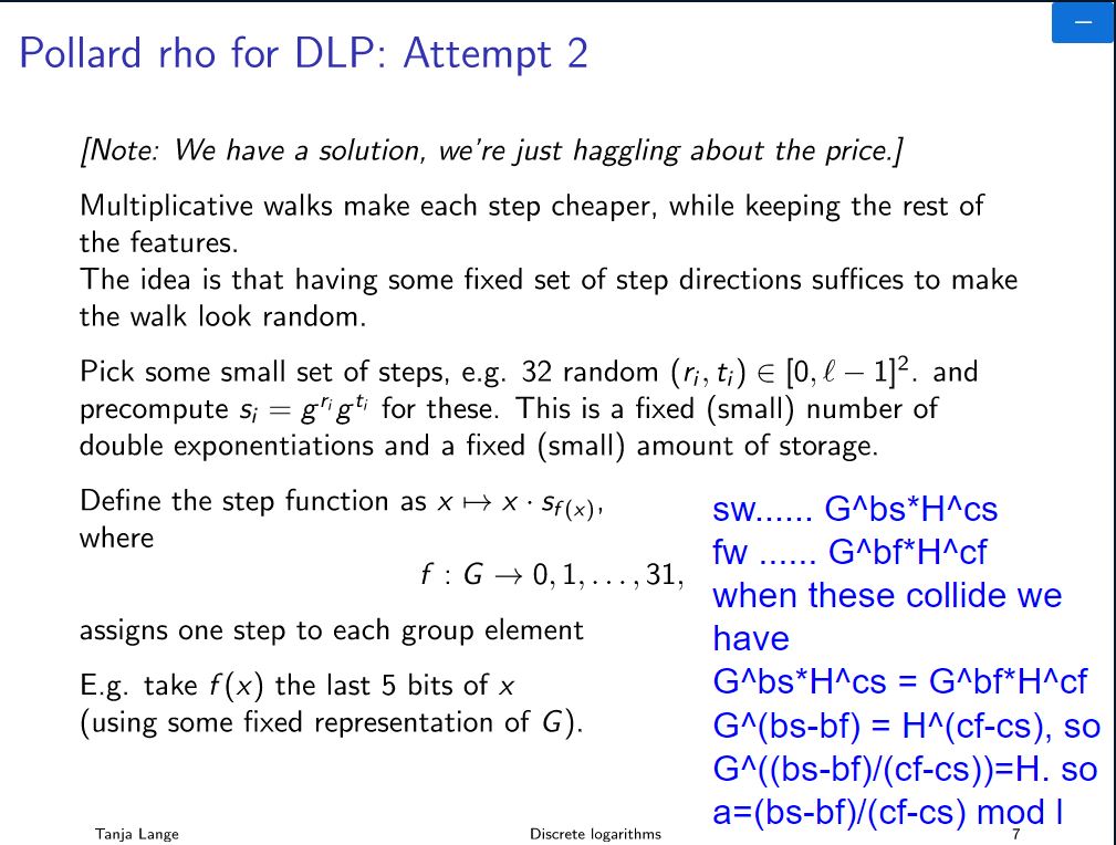 Pollard rho method as an attack on the ECDLP; parallel rho method in order